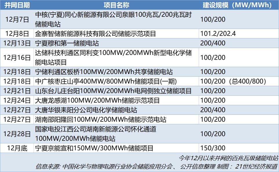 21世紀(jì)經(jīng)濟報道記者注意到,12月以來,大型儲能電站并網(wǎng)最為集中的兩大省份、自治區(qū)是山東和寧夏。