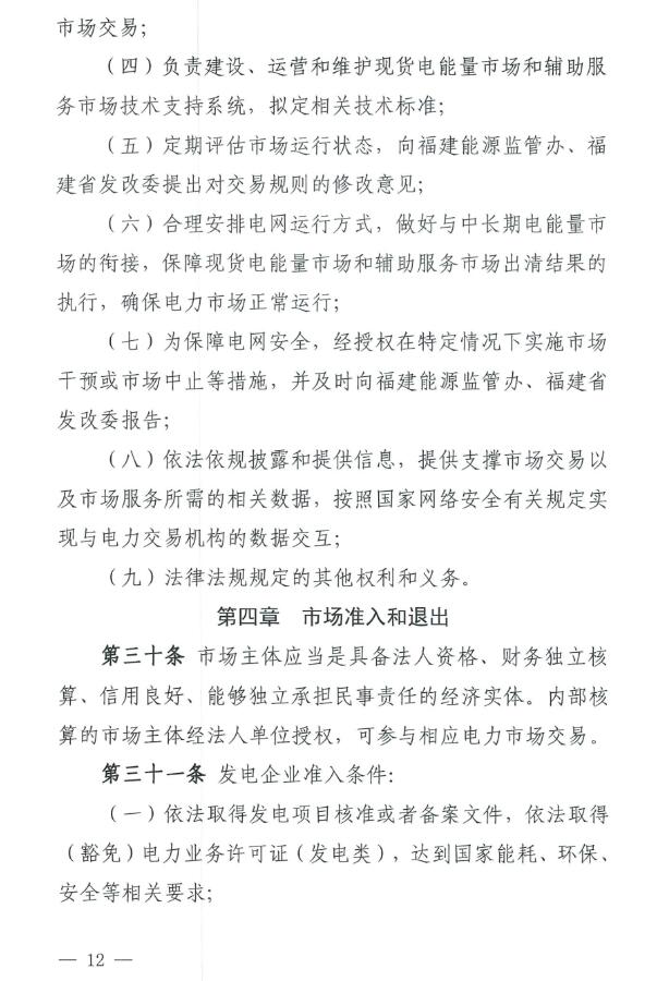 《福建電力市場運營基本規(guī)則(試行)》原文如下: