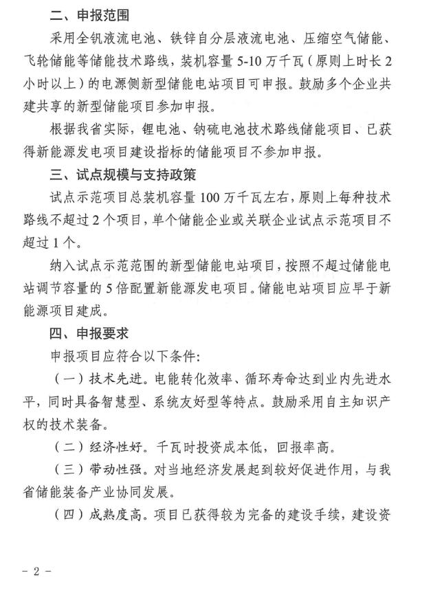 2月3日,湖北省能源局發(fā)布了《省能源局關(guān)于開展新型儲(chǔ)能電站試點(diǎn)示范工作的通知》?!锻ㄖ繁硎?,本次試點(diǎn)釋放項(xiàng)目總裝機(jī)規(guī)模約1GW左右。原則上每種技術(shù)路線不超過(guò)2個(gè)項(xiàng)目;納入試點(diǎn)示范范圍的新型儲(chǔ)能電站項(xiàng)目,按照不超過(guò)儲(chǔ)能電池調(diào)節(jié)容量的5倍配置新能源發(fā)電項(xiàng)目。儲(chǔ)能電站項(xiàng)目應(yīng)早于新能源項(xiàng)目建成。申報(bào)截止時(shí)間3月31日。