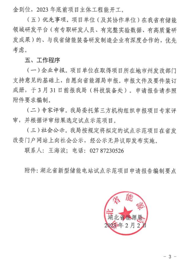 湖北省能源局印發(fā)《關(guān)于開展新型儲(chǔ)能電站試點(diǎn)示范工作的通知》