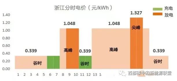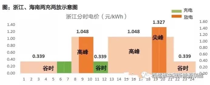 除此之外,需要說明的事情是由于工商業(yè)分布式能源發(fā)電量通常遠(yuǎn)低于工業(yè)企業(yè)日常用電負(fù)荷,因此,關(guān)于光伏為儲能充電的場景不予考慮,本文中的配儲系統(tǒng)僅測算峰谷套利模型下的經(jīng)濟(jì)效益分析。用戶側(cè)儲能的兩充兩放策略分析:(以浙江為例)(1)6:00 - 8:00、11:00 - 13:00 為谷段