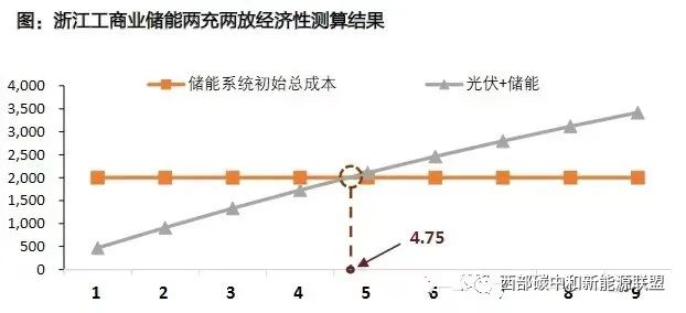 (3)每年凈現(xiàn)金流=(每年可節(jié)省的價差電費(fèi)-年運(yùn)維費(fèi)用-年逆變器替換費(fèi)用)×折現(xiàn)因子浙江?。簝纱纬潆娋诠葧r,兩次放電分別在尖峰段及高峰段,平均峰谷價差為0.85元/kWh,測得投資回收期約為4.75年。據(jù)測算,浙江、廣東、海南三省儲能投資回收周期均在6年以內(nèi)。在可實(shí)現(xiàn)兩充兩放的省市,疊加全國范圍內(nèi)峰谷價差持續(xù)拉大,工商業(yè)儲能經(jīng)濟(jì)性相當(dāng)可觀。依據(jù)測算結(jié)果(本文僅對浙江省進(jìn)行了測算,其他省份就不一一贅述,可自行測算),浙江省4.75年,廣東省5.70年,海南省5.98年。