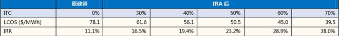 圖:經(jīng)濟(jì)性測(cè)算:IRA頒布后獨(dú)立儲(chǔ)能的經(jīng)濟(jì)性大幅提升(100MW/400MWh項(xiàng)目)