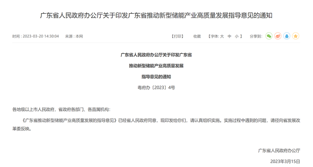 3月20日,廣東省人民政府辦公廳發(fā)布《廣東省推動(dòng)新型儲(chǔ)能產(chǎn)業(yè)高質(zhì)量發(fā)展的指導(dǎo)意見》(以下簡(jiǎn)稱《意見》)?!兑庖姟分赋?,到2025年,廣東省新型儲(chǔ)能產(chǎn)業(yè)營業(yè)收入達(dá)到6000億元,年均增長(zhǎng)50%以上,裝機(jī)規(guī)模達(dá)到300萬千瓦。到2027年,全省新型儲(chǔ)能產(chǎn)業(yè)營業(yè)收入達(dá)到1萬億元,裝機(jī)規(guī)模達(dá)到400萬千瓦。