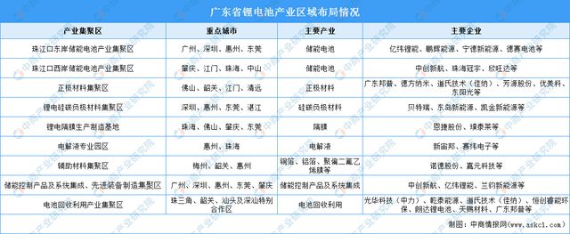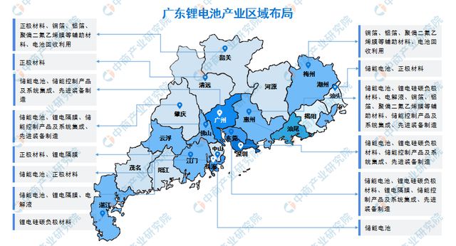 近年,廣東省不斷優(yōu)化鋰電池產(chǎn)業(yè)區(qū)域布局,重點(diǎn)建設(shè)珠江口東岸儲(chǔ)能電池產(chǎn)業(yè)集聚區(qū),珠江口西岸儲(chǔ)能電池產(chǎn)業(yè)集聚區(qū),正極材料集聚區(qū),鋰電硅碳負(fù)極材料集聚區(qū),鋰電隔膜生產(chǎn)制造基地,電解液專業(yè)園區(qū),銅箔、鋁箔、聚偏二氟乙烯膜等輔助材料集聚區(qū),儲(chǔ)能控制產(chǎn)品及系統(tǒng)集成、先進(jìn)裝備制造集聚區(qū),電池回收利用產(chǎn)業(yè)集聚區(qū)等。