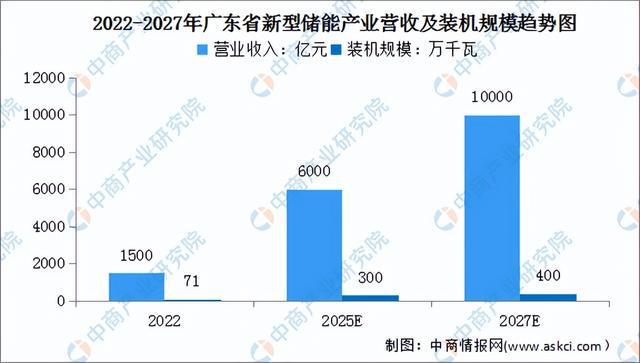 儲(chǔ)能是新型電力系統(tǒng)的重要組成部分,在“雙碳”目標(biāo)下,廣東省新型儲(chǔ)能產(chǎn)業(yè)具有良好發(fā)展前景。數(shù)據(jù)顯示,2022年廣東省新型儲(chǔ)能產(chǎn)業(yè)營(yíng)業(yè)收入約1500億元,裝機(jī)規(guī)模達(dá)到71萬(wàn)千瓦。預(yù)計(jì)到2025年,廣東省新型儲(chǔ)能產(chǎn)業(yè)營(yíng)業(yè)收入達(dá)到6000億元,年均增長(zhǎng)50%以上,裝機(jī)規(guī)模達(dá)到300萬(wàn)千瓦;到2027年,廣東省新型儲(chǔ)能產(chǎn)業(yè)營(yíng)業(yè)收入達(dá)到1萬(wàn)億元,裝機(jī)規(guī)模達(dá)到400萬(wàn)千瓦。