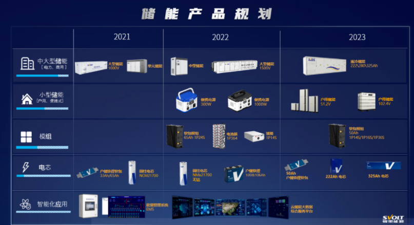 在產(chǎn)品上,目前產(chǎn)品包含全序列中大型儲(chǔ)能(電力和商用側(cè))、小型儲(chǔ)能(戶(hù)用、便攜式儲(chǔ)能)、模組、各類(lèi)規(guī)格儲(chǔ)能電芯以及智能化應(yīng)用系統(tǒng)和平臺(tái),滿(mǎn)足客戶(hù)在發(fā)電側(cè)、電網(wǎng)側(cè)、用戶(hù)側(cè)的儲(chǔ)能及能源管理需求。