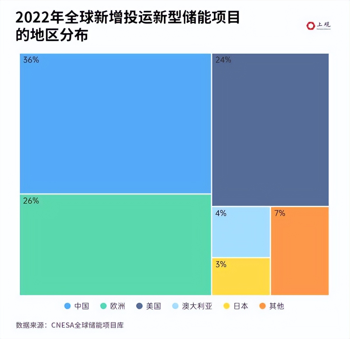 中國也是全球儲能市場發(fā)展的主力軍。據(jù)統(tǒng)計(jì),在全球已投運(yùn)電力儲能項(xiàng)目累計(jì)裝機(jī)規(guī)模中,2022年中國占四分之一,且依舊保持著較高的年增長率(38%)。2022年,以鋰電池儲能為代表的新型儲能在中國新增7.3吉瓦/15.9吉瓦時(shí),占比全球第一(36%)。