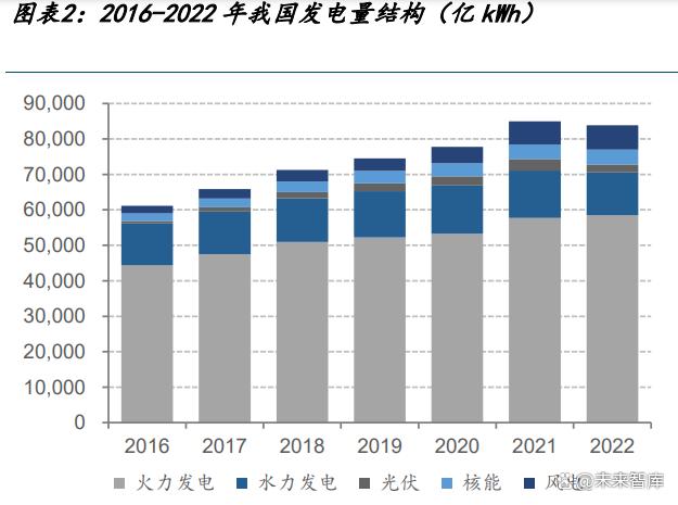 測算邏輯:根據(jù)國家發(fā)改委下設(shè)全球能源互聯(lián)網(wǎng)發(fā)展合作組織 2021 年 3 月發(fā)布 的《中國 2060 年前碳中和研究報告》數(shù)據(jù),預(yù)計到 2030 年全社會總用電量將達 到 11 萬億千瓦時,光伏、風(fēng)電、水電總裝機將分別達到 10/8/4.4 億 kW,假設(shè) 光伏、風(fēng)電、水電的年利用小時數(shù)分別為 1400/2000/3800 小時,預(yù)計光伏、風(fēng) 電、水電、火電在發(fā)電結(jié)構(gòu)中占比將分別達到 27%/22%/12%/36%。