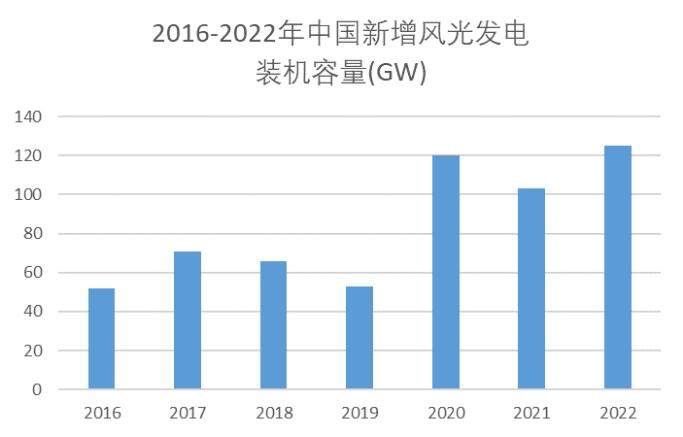 中國新增風(fēng)光發(fā)電裝機(jī)容量圖