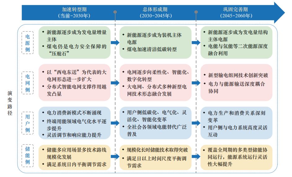 圖|新型電力系統(tǒng)建設(shè)“三步走”發(fā)展路徑(來源:《新型電力系統(tǒng)發(fā)展藍(lán)皮書》)