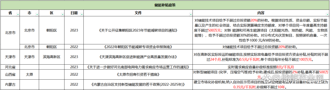 3、用戶側(cè)儲能補貼政策