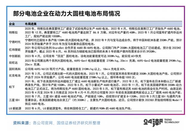(資料來源:24潮7月19日文章《“大圓柱電池” 的時代序幕已經(jīng)開啟》)