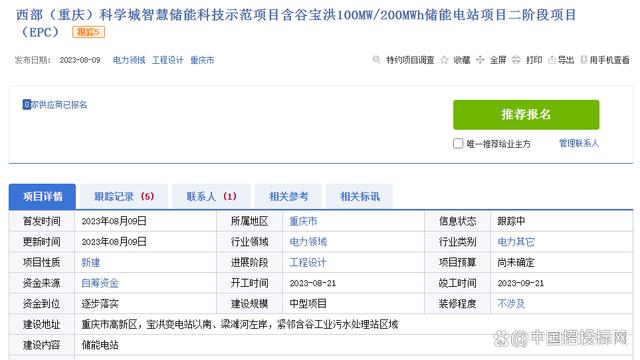 西部(重慶)科學(xué)城智慧儲(chǔ)能科技示范項(xiàng)目含谷寶洪100MW/200MWh儲(chǔ)能電站項(xiàng)目二階段項(xiàng)目(EPC),建設(shè)地點(diǎn)位于重慶市高新區(qū),寶洪變電站以南、梁灘河左岸,緊鄰含谷工業(yè)污水處理站區(qū)域,資金來源為企業(yè)自籌,資金已落實(shí),項(xiàng)目規(guī)劃裝機(jī)規(guī)模100MW/200MWh,工期:30天,計(jì)劃開始日期:2023年08月21日。