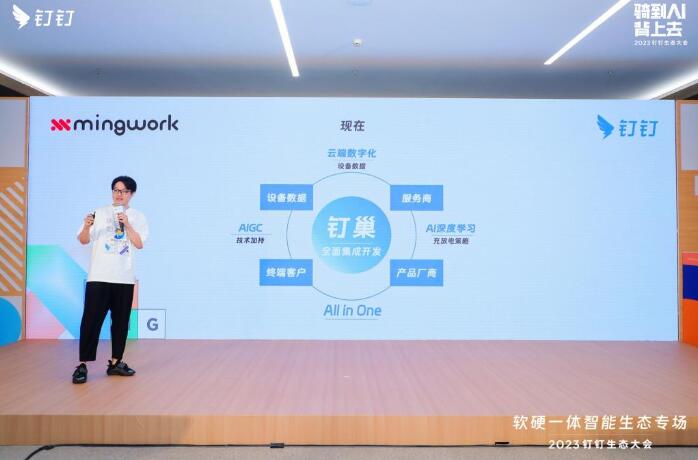 明我的分布式解決方案不僅為用戶提供了硬件服務(wù),還在釘釘平臺上進行了軟件服務(wù)的升級。相較于傳統(tǒng)的硬件銷售模式,這次的方案體現(xiàn)了數(shù)字化的深度。在釘釘上,用戶無需再通過PPT來了解產(chǎn)品,而是可以通過在線CAD和數(shù)字展廳與產(chǎn)品互動。一旦提出需求,他們就可以看到一個在線數(shù)字方案。結(jié)合AIGC技術(shù),用戶能夠迅速了解產(chǎn)品的細節(jié)。