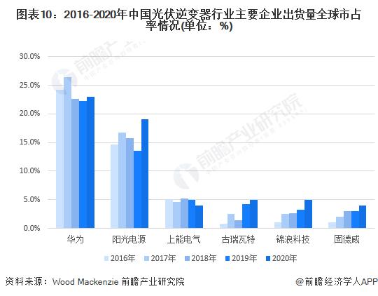 從光伏逆變器出貨量在全球市占率來看,2016-2020年,陽光電源連續(xù)蟬聯(lián)全球第二,并且在2020年的全球市占率有大幅提升,增長了5.5個百分點,進一步拉進了與排名第一華為的差距。