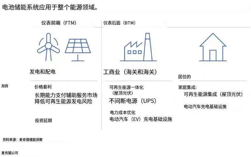 電化學(xué)儲(chǔ)能分為三個(gè)部分:電表前端 (FTM) 公用事業(yè)規(guī)模安裝,通常大于 10 兆瓦時(shí) (MWh);用戶側(cè) (BTM) 商業(yè)和工業(yè)裝置,通常范圍從 30 千瓦時(shí) (kWh) 到 10 MWh;和BTM住宅裝置,通常小于30 kWh。
