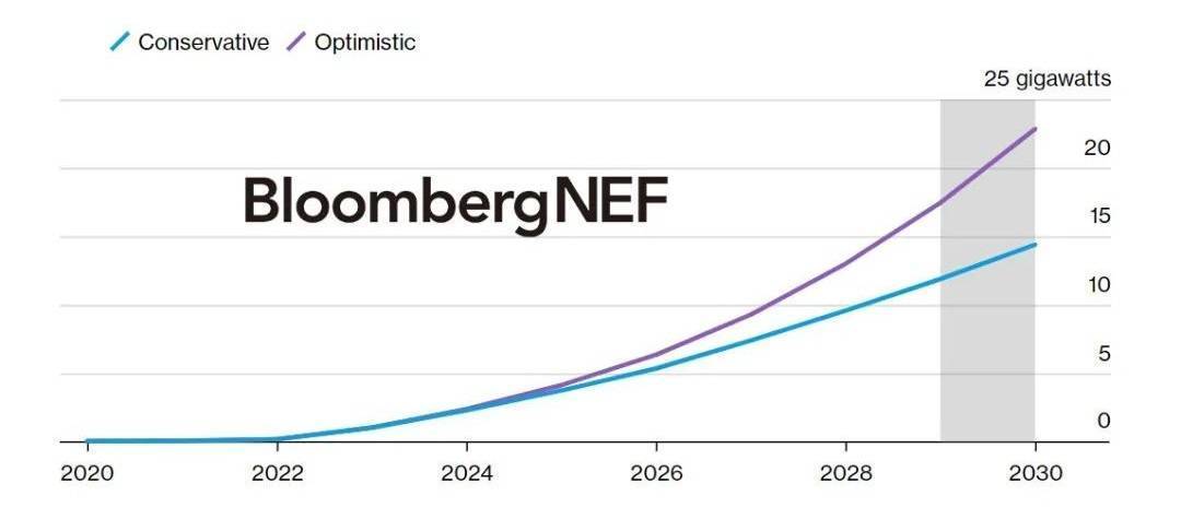 圖:中國液流電池裝機(jī)規(guī)模預(yù)測(彭博新能源財經(jīng))