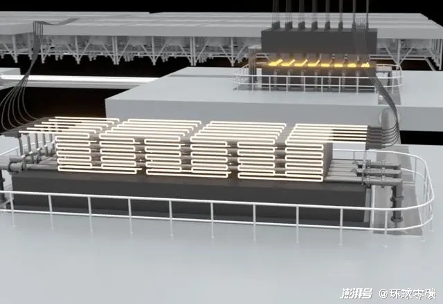 圖說(shuō):加熱元件為液態(tài)錫加載能量,并將能量?jī)?chǔ)存在白熱石墨塊中