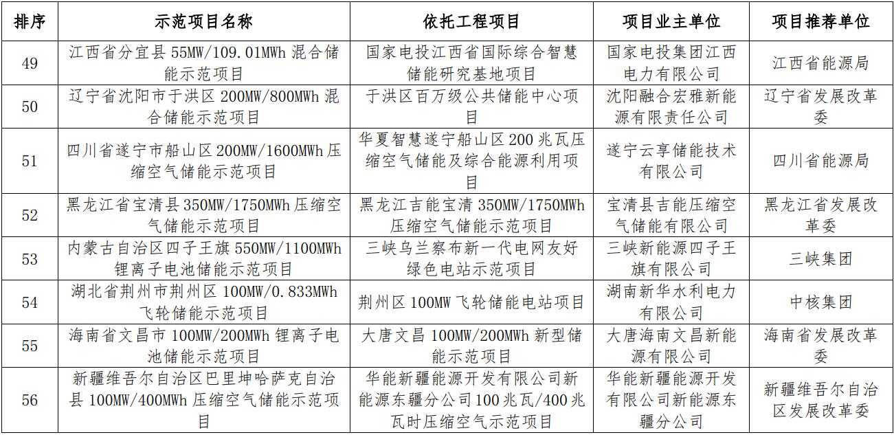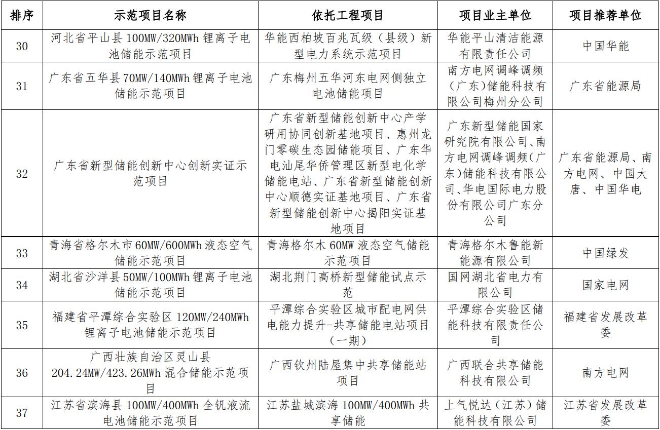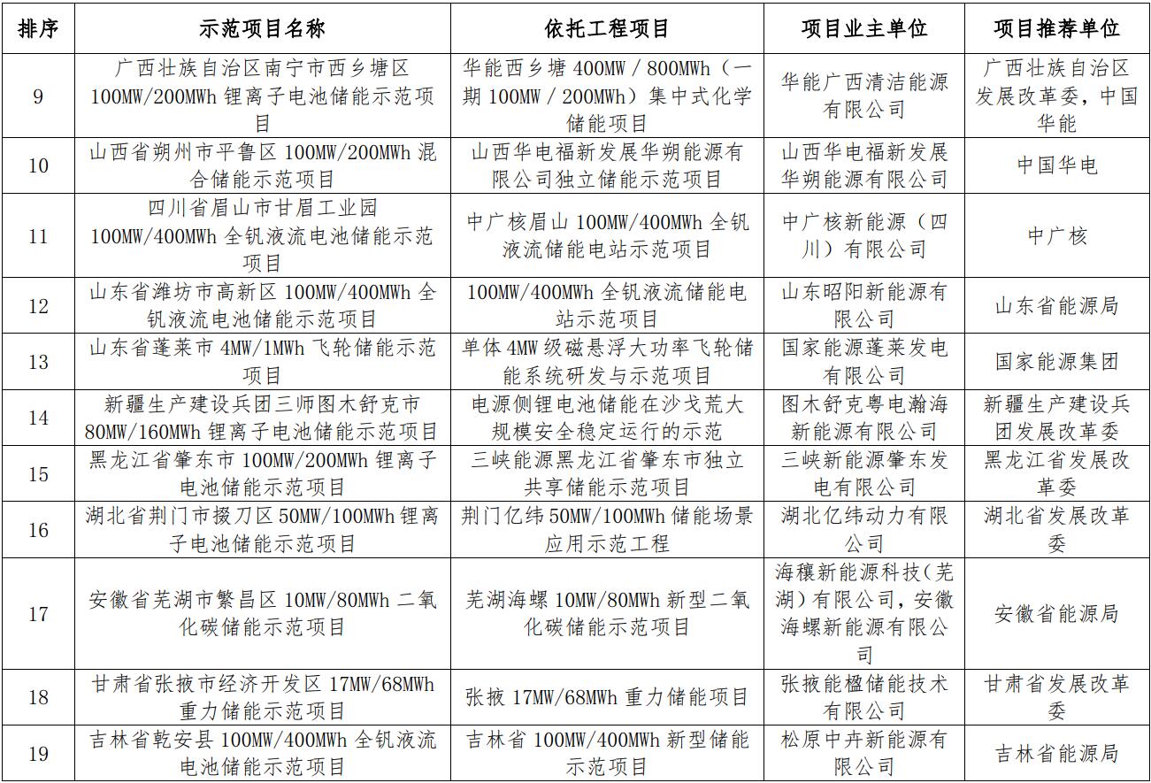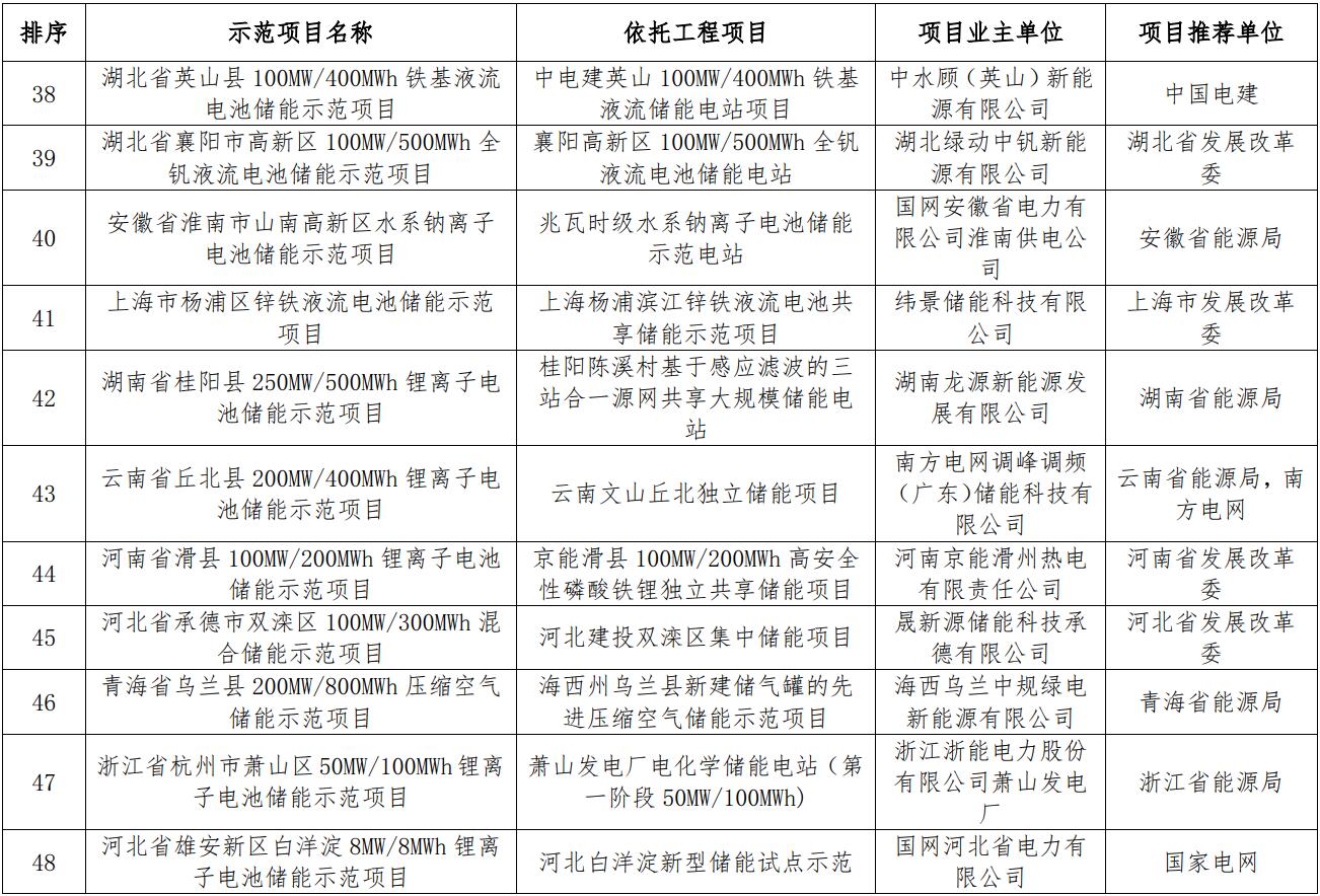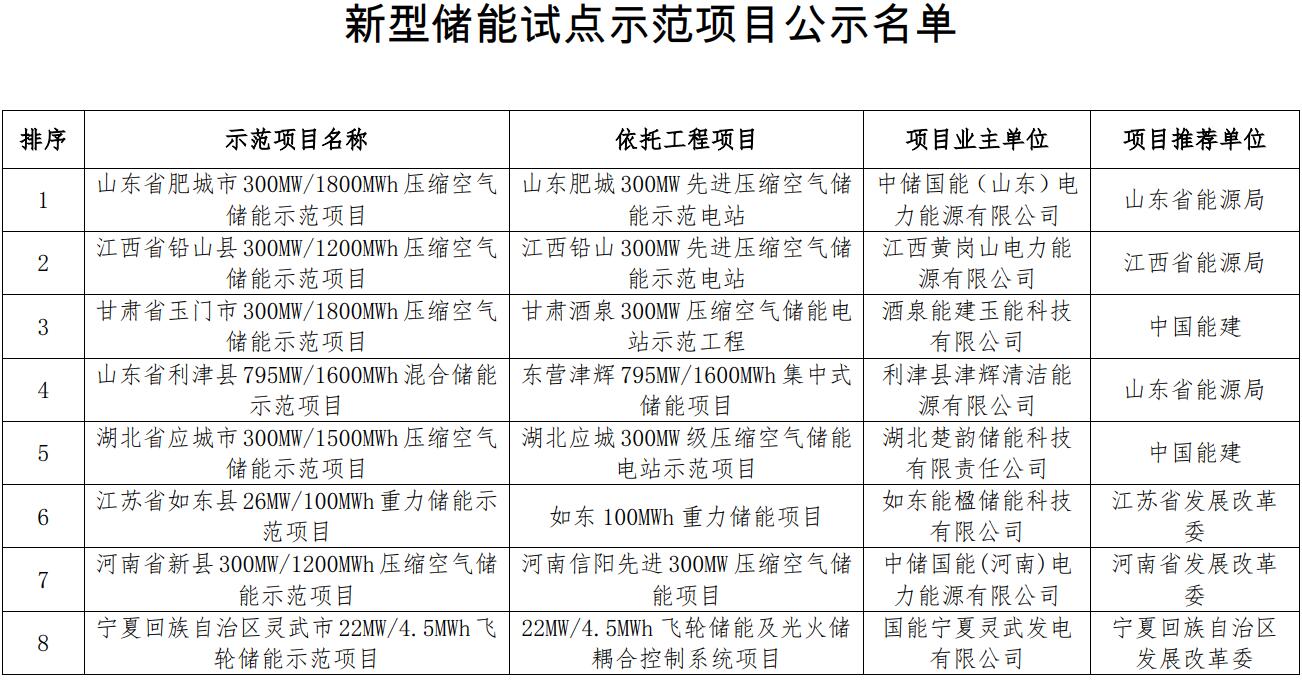 國家能源局綜合司關(guān)于公示新型儲能試點示范項目的通知