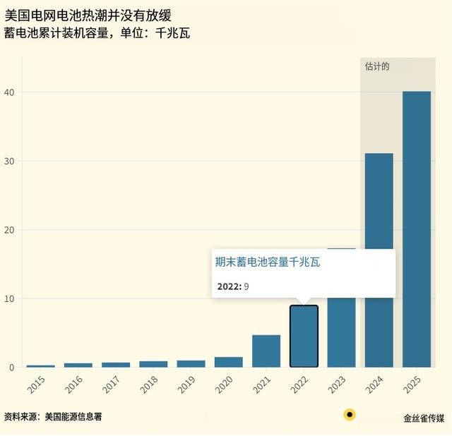 據(jù)美國能源信息署統(tǒng)計,2023年末,美國電網(wǎng)安裝的電池儲能裝機總量,已達到驚人的17.3GW。這個數(shù)據(jù),比2022年底時的9GW增長了近一倍!
