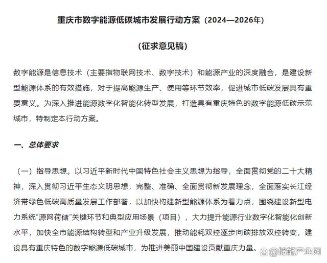 日前,重慶經(jīng)信委印發(fā)《重慶市數(shù)字能源低碳城市發(fā)展行動方案(2024—2026年)(征求意見稿)》。文件提出,到2026年,全市數(shù)字能源低碳城市發(fā)展取得明顯成效,建設一批具有示范帶動作用的標志性項目。完成1000個以上用戶側光伏和儲能、虛擬電廠、綠色工廠、綠色交通、綠色建筑等領域示范項目,戶用光伏150萬千瓦,用戶側儲能規(guī)模100萬千瓦/200萬千瓦時。