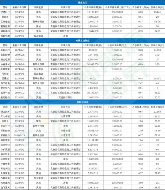 2024年儲(chǔ)能相關(guān)企業(yè)股份回購(gòu)情況一覽