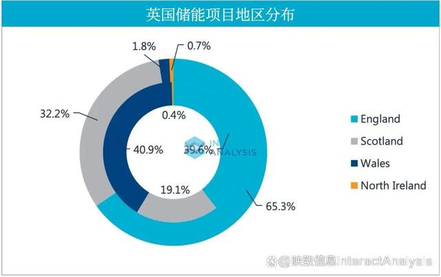 從地域分布看,威爾士、英格蘭當(dāng)前儲能裝機(jī)量最高,均超過2GW,分別占41%及40%。其中威爾士的儲能以抽水蓄能為主,容量占比超過98%,而英格蘭的在運項目均為新型儲能。在英格蘭的九個行政大區(qū)中,儲能項目部署相對集中在英格蘭東南地區(qū)。