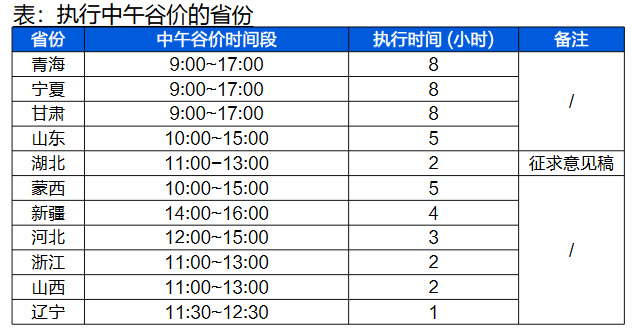 此外,當前峰谷價差套利是工商業(yè)儲能的主要盈利渠道,儲能系統(tǒng)價格下行有望進一步提升經(jīng)濟性。隨著光伏發(fā)電供大于求,中午執(zhí)行谷段電價或成為趨勢。截至目前,全國已有11個省份部分月份中午出現(xiàn)谷電,2充2放從原來的1次峰/谷+1次峰/平轉(zhuǎn)變?yōu)?次峰/谷,儲能收益進一步提升。