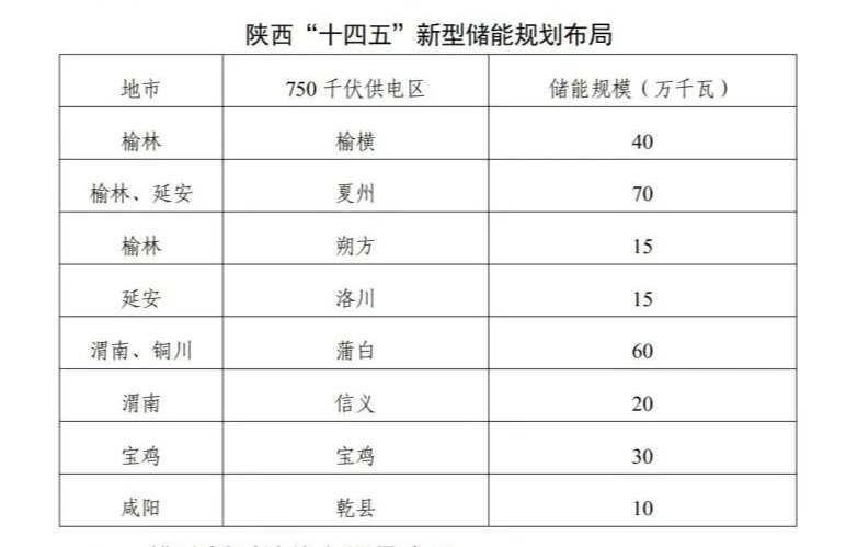 “十四五”期間規(guī)劃在榆林、延安、渭南、銅川、寶雞、咸陽的8個(gè)750千伏供電區(qū)布局2.6GW新型儲(chǔ)能。