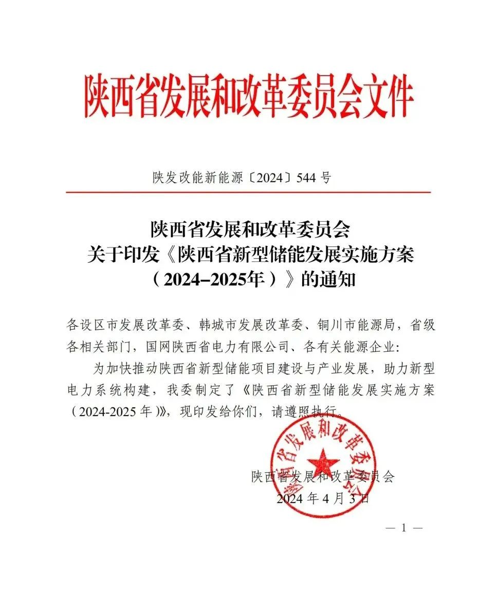 日前,陜西省發(fā)展和改革委員會(huì)印發(fā)《陜西省新型儲(chǔ)能發(fā)展實(shí)施方案(2024-2025年)》的通知。