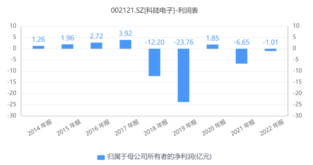 探究科陸電子的發(fā)展歷程,自1996年成立以來,在2018年前一直呈現(xiàn)上升趨勢。從2007年上市初期不足4億元的營業(yè)收入,到2017年躍升至近44億元,凈利潤也從0.68億元攀升至4.59億元,然而,在2018年和2019年,因擔保暴雷、資產(chǎn)減值等事項,合計虧損高達約36億元,致使過去數(shù)十年的盈利化為烏有,甚至一度瀕臨退市的風險。