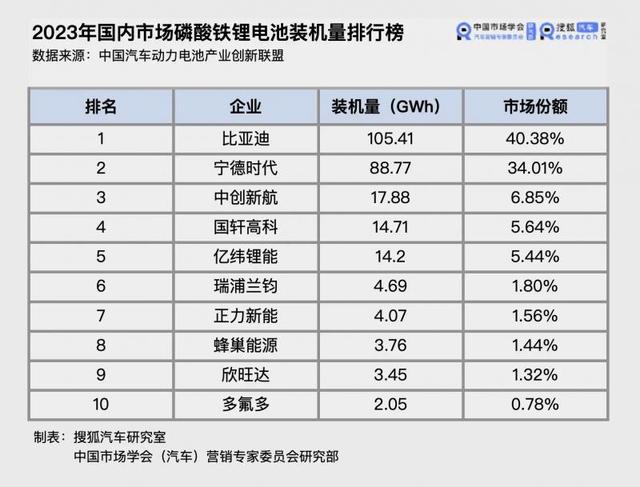 在動力電池領(lǐng)域、特別是磷酸鐵鋰電池領(lǐng)域,寧德時代面對著來自比亞迪強有力的挑戰(zhàn)。中國汽車動力電池產(chǎn)業(yè)創(chuàng)新聯(lián)盟公布的數(shù)據(jù)顯示,2023年比亞迪磷酸鐵鋰動力電池的裝機量已經(jīng)超過寧德時代,拿下40%以上的市場份額。