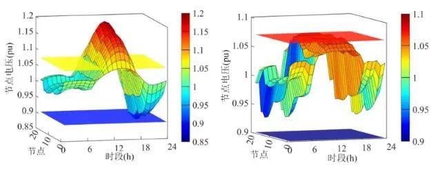 圖3 臺(tái)區(qū)配儲(chǔ)前后節(jié)點(diǎn)電壓變化