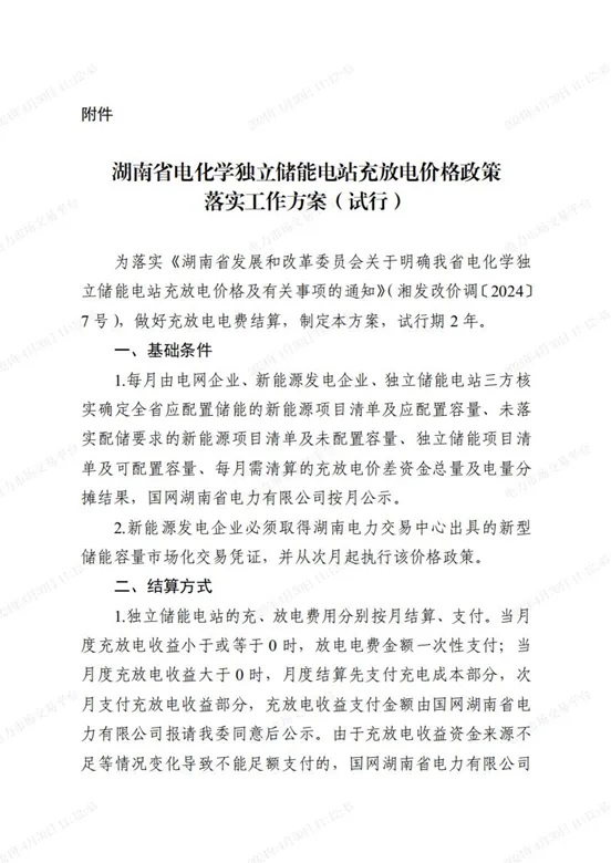 近日,湖南發(fā)改委發(fā)布《湖南省發(fā)展和改革委員會關(guān)于落實(shí)我省電化學(xué)獨(dú)立儲能電站充放電價(jià)格政策有關(guān)工作的通知》,并隨通知下發(fā)了《湖南省電化學(xué)獨(dú)立儲能電站充放電價(jià)格政策落實(shí)工作方案》。