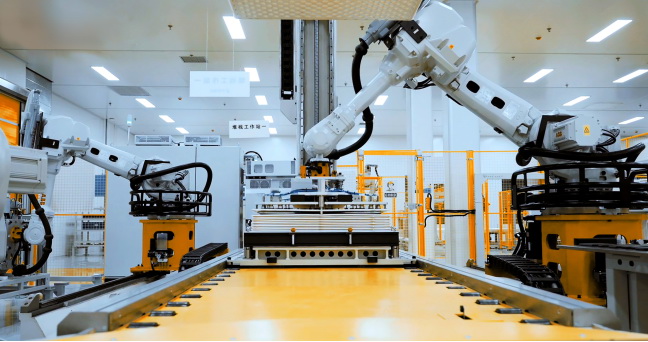 規(guī)范化和智能化生產是發(fā)展儲能的必由之路,也是支撐儲能產品迭代、推廣、持續(xù)降本、持續(xù)降碳、擴大應用規(guī)模的關鍵條件。在 “超G工廠”中,配備了由緯景儲能自主研發(fā)的業(yè)內自動化率最高的液流電池智能產線與系統(tǒng)集成線,通過激光定位、昆蟲仿生等制造工藝,集標準化、自動化、數(shù)智化于一體,開創(chuàng)性地實現(xiàn)液流電池生產的全過程數(shù)智化。工廠配有超過300個機器人承擔精密且繁重的作業(yè),機器人能夠單臂抓舉200公斤重物,且質子交換膜精準度可到達到±0.1毫米,每條產線僅需20分鐘即可完成一個成品電池的組裝,生產效率與精準度均提升了數(shù)十倍,大幅度提高了公司交付產品的良率,提供了質量保證。
