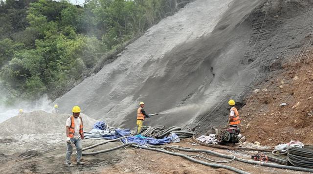 現(xiàn)場工人正在進(jìn)行修筑邊坡。李蔓毓 攝