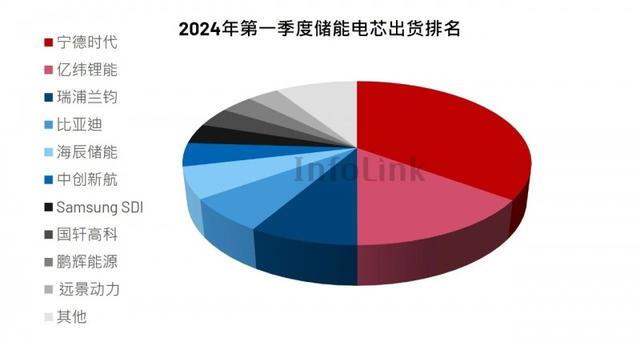 據(jù)InfoLink全球鋰電池供應鏈數(shù)據(jù)庫統(tǒng)計顯示,2024年第一季度的全球儲能電芯出貨規(guī)模達38.82GWh,同比下降2.2%,市場表現(xiàn)總體低迷。其中,儲能電芯出貨量Top5企業(yè)分別為寧德時代、億緯鋰能、瑞浦蘭鈞、比亞迪和海辰儲能。