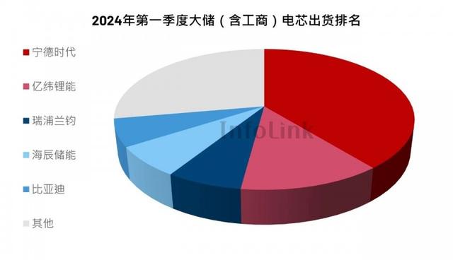 有所不同的是,參照2023年,今年Q1頭部企業(yè)格局發(fā)生改變:除了寧德時代市占率領先穩(wěn)坐龍頭、海辰儲能仍舊第五的位置不變之外,比亞迪從第二退居第四,億緯鋰能憑借大額訂單的儲能電池出貨量同比增長翻倍,升至第二,瑞浦蘭鈞則延續(xù)去年的出貨勢頭上升一個名次,位居第三。