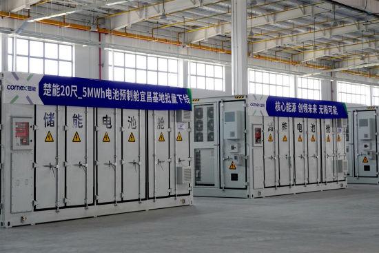 自去年8月投產(chǎn)以來,宜昌楚能已生產(chǎn)近4GWh電芯產(chǎn)品,一直以單電芯產(chǎn)品形式進(jìn)行交付。此次5MWh電池集裝箱下線交付,標(biāo)志著宜昌楚能產(chǎn)品交付能力邁向新臺(tái)階。目前,一個(gè)集裝箱車間一天能組建2至3個(gè)電池集裝箱產(chǎn)品。