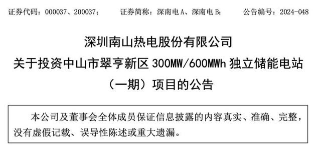 目的及影響方面,深南電A表示,投資中山市翠亨新區(qū)300MW/600MWh獨(dú)立儲(chǔ)能電站(一期)項(xiàng)目符合公司在新形勢(shì)下戰(zhàn)略發(fā)展的需求,有利于推動(dòng)公司在大型儲(chǔ)能領(lǐng)域的探索與實(shí)踐,助力公司向綜合能源服務(wù)轉(zhuǎn)型;有利于公司充分利用現(xiàn)有資源,打造新型商業(yè)模式,推動(dòng)公司全面轉(zhuǎn)型發(fā)展;有利于中山市深入貫徹落實(shí)“雙碳”政策,打造獨(dú)立儲(chǔ)能項(xiàng)目示范,協(xié)同儲(chǔ)能相關(guān)產(chǎn)業(yè)鏈;有利于盤活中山公司線路資產(chǎn),促進(jìn)國(guó)有資產(chǎn)的提質(zhì)增效。在確保公司日常經(jīng)營(yíng)和資金安全的前提下,使用中山公司線路資產(chǎn)投資中山市翠亨新區(qū)300MW/600MWh獨(dú)立儲(chǔ)能電站(一期)項(xiàng)目不影響公司日常資金周轉(zhuǎn)需要,不影響公司生產(chǎn)經(jīng)營(yíng)的正常開展。中山市翠亨新區(qū)300MW/600MWh獨(dú)立儲(chǔ)能電站(一期)項(xiàng)目產(chǎn)業(yè)方向符合公司未來的戰(zhàn)略布局,將會(huì)對(duì)公司未來的財(cái)務(wù)狀況及長(zhǎng)遠(yuǎn)發(fā)展產(chǎn)生積極影響。
