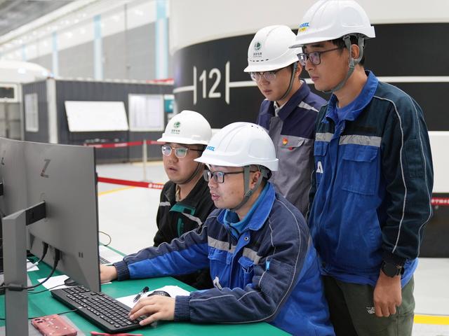 國網(wǎng)新源河北豐寧抽水蓄能電站機電部員工與主機廠人員對12號機組試運行狀態(tài)進行監(jiān)測分析。陳磊說,變速機組還具備功率調(diào)節(jié)和系統(tǒng)響應速度快等性能優(yōu)勢,發(fā)電空載啟動后從勵磁投入到機組并網(wǎng)僅需2秒,遠小于傳統(tǒng)定速機組的半分鐘到1分鐘,可以更快平衡新能源出力波動,更好滿足新型電力系統(tǒng)下電網(wǎng)調(diào)節(jié)需求。