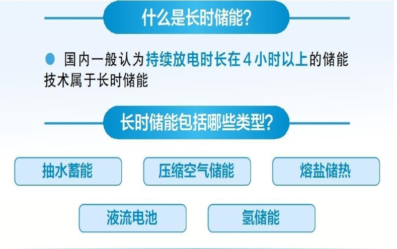 目前,國內(nèi)外對于長時儲能的放電時長尚未統(tǒng)一定義,國內(nèi)一般認為持續(xù)放電時長在4小時以上的技術(shù)屬于長時儲能,主要包括抽水蓄能、壓縮空氣儲能、熔鹽儲熱、液流電池和氫儲能等5種類型。發(fā)展長時儲能對我國保障能源安全、推動能源綠色低碳轉(zhuǎn)型、促進能源高質(zhì)量發(fā)展具有重要意義。