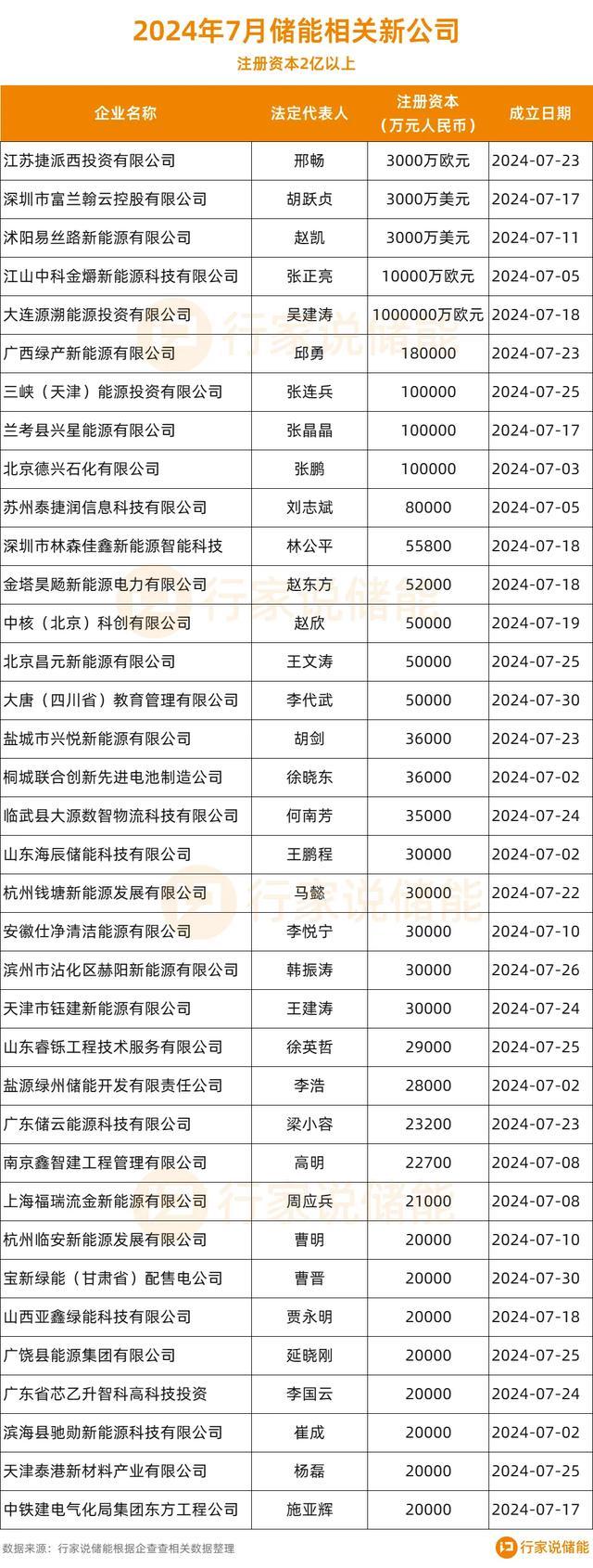 近日,多家儲能相關新公司及子公司成立。另據企查查數(shù)據顯示,2024年1-7月新注冊儲能相關公司48708家,平均算下來日增近200家。