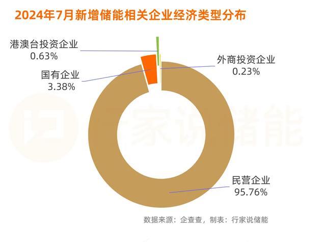 7月新設儲能相關企業(yè)中,9成多是民營企業(yè),達7210家;國有企業(yè)262家,港澳臺獨資企業(yè)49家,外商投資企業(yè)18家。