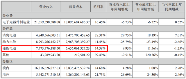 動(dòng)力電池出貨13.54GWh,同比增長7.03%;營收89.94億,同比下降25.79%;毛利率11.45%。