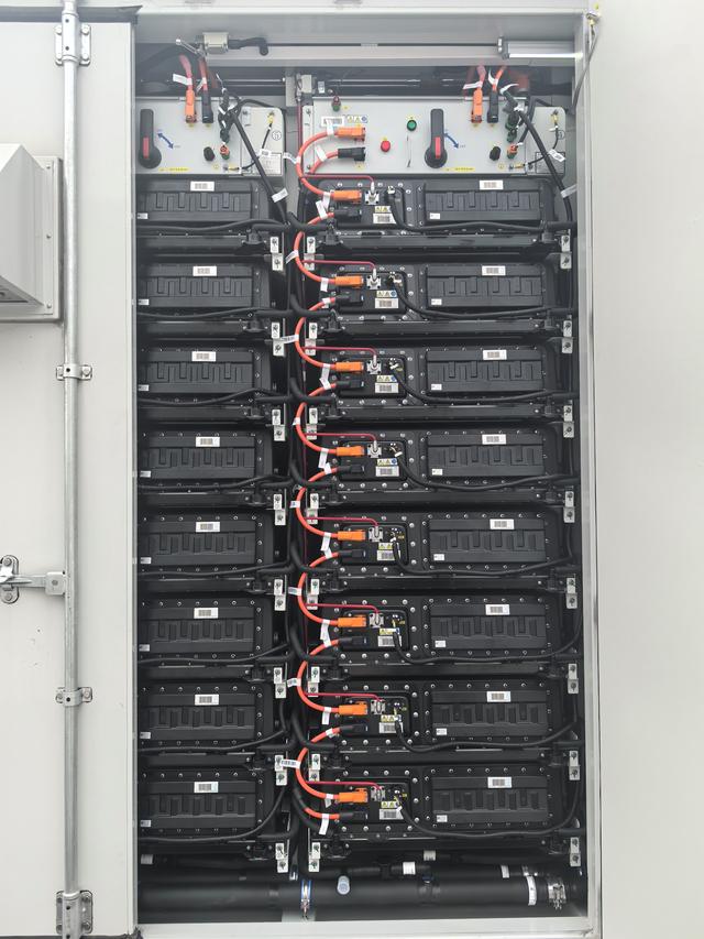 在潞城仁和儲能電站園區(qū)內(nèi)有20個電化學(xué)儲能單位,好似一個個由電池組成的“車廂”。打開“電池車廂”艙門,記者發(fā)現(xiàn),這個龐然大物是由多個小塊的磷酸鐵鋰電瓶組成的。每個儲能單位由2個小倉組成,每個倉內(nèi)有24簇電池包,每簇電池包內(nèi)有8塊電池,這些電池的壽命約在8-10年。