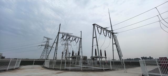 潞城仁和儲能電站是一個電化學(xué)儲能電站,與埋在地下的飛輪裝置不同,電化學(xué)儲能的裝置都在地面以上,園區(qū)主要分為兩個部分:升壓站和儲能區(qū)。升壓站內(nèi)的幾個立柱支撐起了進(jìn)出能量的電纜,像一座橋梁連接起外部電力系統(tǒng)與電站儲能區(qū)之間的能量交換。