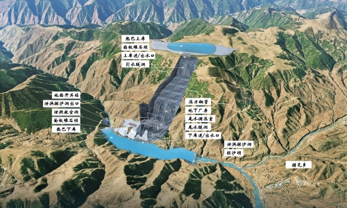 芒康熱巴抽水蓄能電站位于西藏自治區(qū)昌都市芒康縣,距昌都的直線距離約165千米。上水庫(kù)位于瀾滄江左岸二級(jí)支流達(dá)其曲右岸尼吉拉臺(tái)地上,通過(guò)開(kāi)挖筑壩形成,流域面積1.06平方千米;下水庫(kù)位于達(dá)其曲干流上游河段,利用攔河壩和攔沙壩之間的天然地形成庫(kù),下水庫(kù)攔沙壩控制流域面積328平方千米、攔沙壩~攔河壩區(qū)間流域面積4.75平方千米。電站連續(xù)滿發(fā)小時(shí)數(shù)6小時(shí),初擬額定水頭702米。樞紐工程主要由上水庫(kù)、下水庫(kù)、地下輸水發(fā)電系統(tǒng)、地面開(kāi)關(guān)站和補(bǔ)水系統(tǒng)等建筑物組成。上水庫(kù)采用瀝青混凝土面板堆石壩,最大壩高66米,采用全庫(kù)盆瀝青混凝土面板防滲方案;下水庫(kù)攔河壩采用鋼筋混凝土面板堆石壩,最大壩高105米;下水庫(kù)攔沙壩采用碾壓混凝土重力壩,最大壩高60.5米;輸水線路水平距離約2940米,距高比4.24。從日曲左岸取水,永久補(bǔ)水線路采用地下埋管的布置方式,補(bǔ)水線路長(zhǎng)約2.12千米。