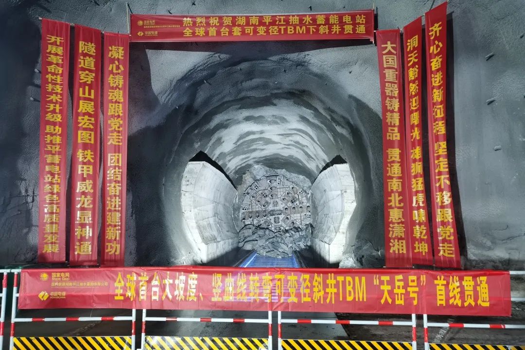 11月22日,湖南平江抽水蓄能電站1號(hào)下斜井隧洞成功貫通,標(biāo)志著全球首臺(tái)大傾角、可變徑、斜井硬巖掘進(jìn)機(jī)(TBM)“天岳號(hào)”圓滿完成1號(hào)下斜井583米的掘進(jìn)任務(wù)。